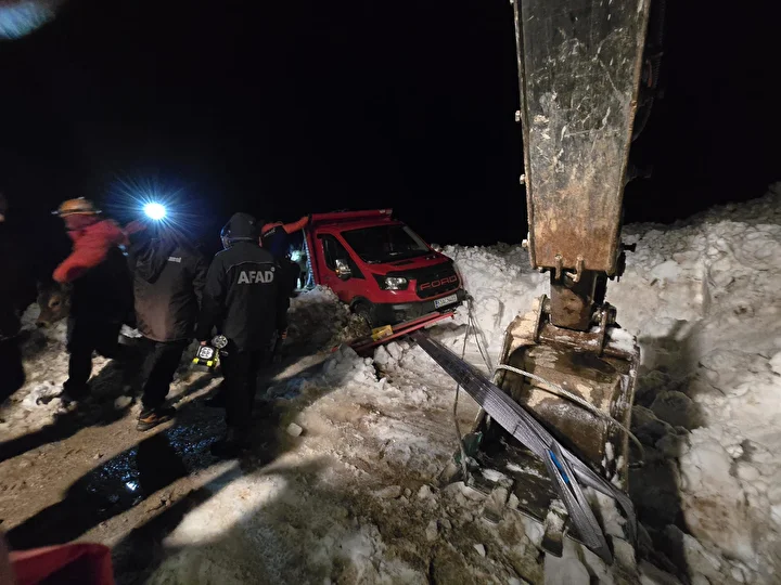 Yolda seyir halinde bulunan ve içinde hayvanların da yer aldığı bir kamyonete çığ çarpması sonucu uçurumun kıyısında askıda kaldı.