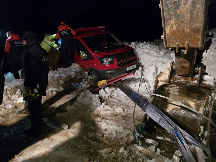Yapılan çalışmalar sonucu mahsur kalan 15 kişi ile kamyonet ve içerisindeki hayvanlar kurtarıldı.